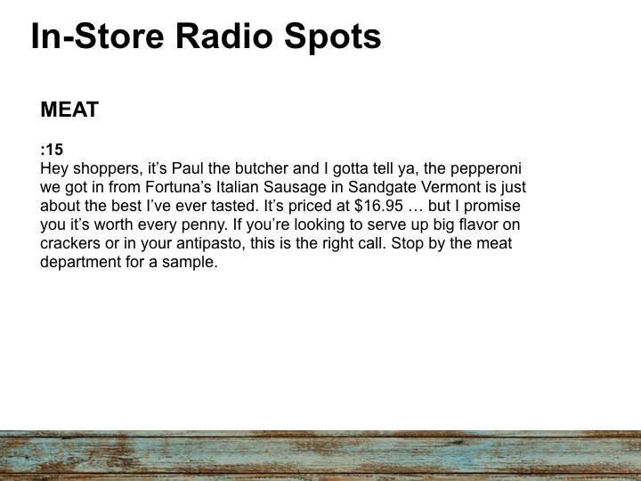 Leveraging the voices of authority in Produce, Dairy, Meat, Seafood, Beer, Floral and Bakery, we provide inspirational and educational recommendations on fresh, local and seasonal offerings.